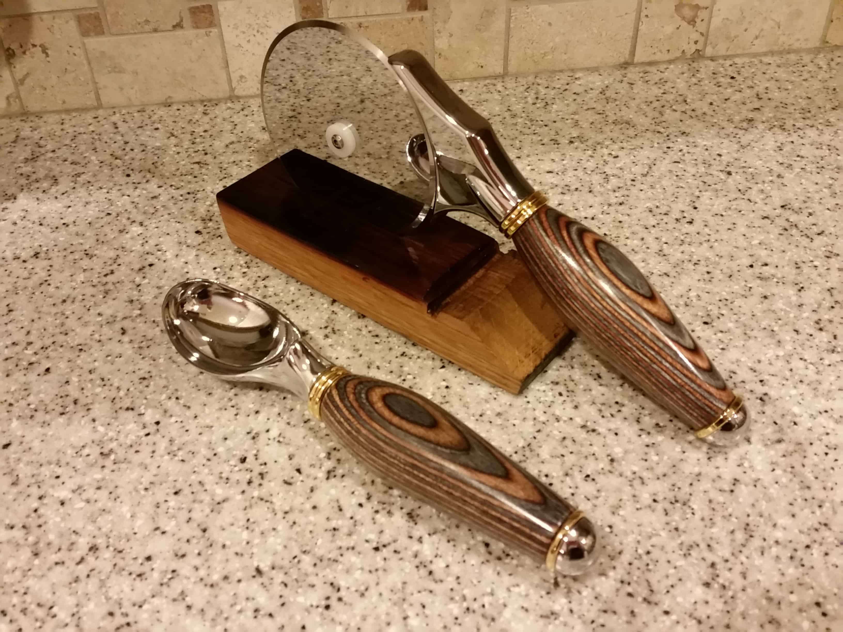 PW: Our most popular products are our pepper and salt mills, pizza cutters and ice cream scoops. We love to create a little piece of art for someone’s kitchen counter or dining room that is not only beautiful but useful as well. We like to call it “useful art.”