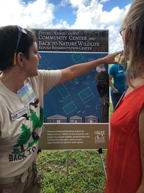 The Back to Nature family of volunteers and supporters never gave up on the dream, and in 2007, that dream became a reality as they signed a lease to move onto one of Orange County’s GreenPlace properties in a partnership to provide a rehabilitation and educational facility. In March 2014, Back to Nature relocated to Eagle Creek onto 20 acres, part of a 232-acre parcel of the wildlife corridor named Eagles Roost, which is home to nesting eagles and other species of wildlife visiting as well. By 2020, new buildings will be underway through the “Invest In Our Home For Life” program that former Orange County Mayor Teresa Jacobs initiated in which District 4 Commissioner Thompson invested $3.5 million of her program funds for Back to Nature’s future buildings during her term.