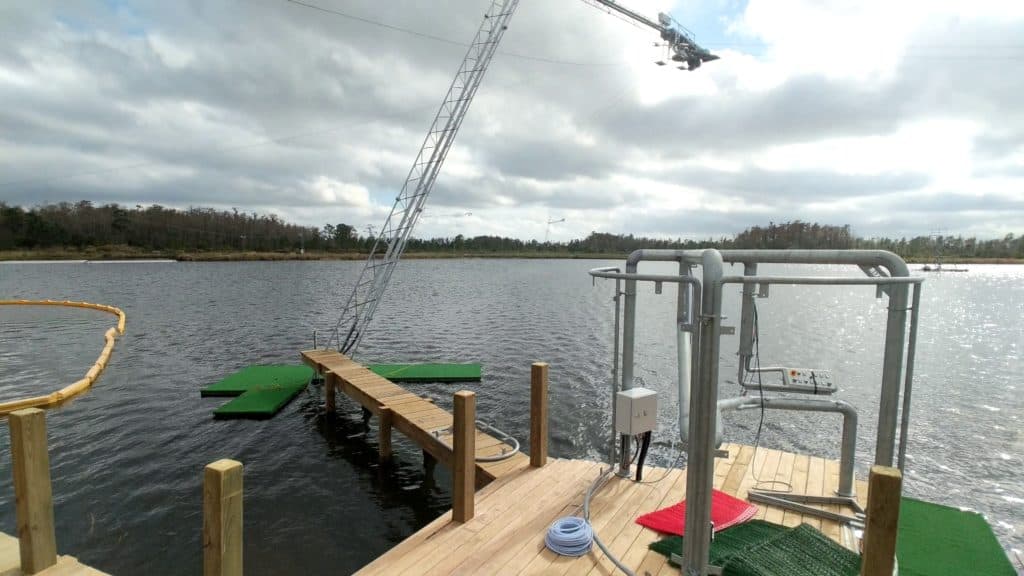 At this time last year, Nona Adventure Park was just announced, and I met Kai Fusser, owner/operator of Nona Adventure Park at the 2017 Orlando International Association of Amusement Parks and Attractions (IAAPA) Convention. Since then, Fusser has put in many early mornings and long days at the site. On the day of my recent visit, crews were installing the floating dock that will run the entire perimeter of the lake. “This way, if somebody falls, they can just swim back to the dock and walk back. It’s the quickest and safest way,” said Fusser. Already installed are the Rixen Cable Park, climbing tower, and Pro Shop. Seeing how far the park has come in 12 months shows dedication, and it is so inspirational to witness.