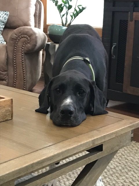 Almost two years old now, Naxos has become close to everyone in the family but especially to Tom and has become his shadow. “Nax,” as he is referred to, is a familiar face at the local Bark Park with his friendliness and speed, joining in on the fun with all the other local pooches. As each pooch displays a fun part of their personality at the dog park, Nax is even funnier at home. He rests his head anywhere and everywhere from a table to a chair or on someone’s leg. Could that be considered a “cat nap”? Very affectionate with everyone, Nax has clearly picked up on their recent loss of a family member, and he provides comfort and lifts the family’s spirits during the day. Many of us know that well.