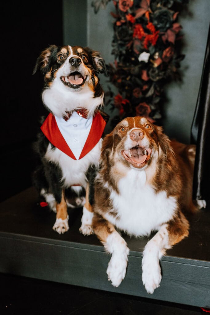 As you can see from the photos, both Cosmo and Starfire were part of the wedding party of Gregor and Leslie’s beautiful wedding in Winter Park. Leslie’s mom wore a black, red-kissed dress for her wedding. Leslie wore an all-black dress and wore a black, red-kissed veil to pay homage to her mom. Everyone had tears in their eyes as she walked down the aisle, including Cosmo, who was the ring bearer. Gregor says Cosmo cried during their vows!! Starfire was happy just to watch the ceremony without any accidents!