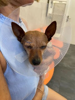 There were several sightings of Julieta searching in yards for water and food, but she quickly slipped anyone’s catch. Poor Julieta was in a new country and scared for sure. FINALLY, with the help of this incredible group of concerned people, Julieta was sighted in Village Walk after this tireless, week-long search. This little blessing survived all this time in the wild. The family immediately went to Village Walk and was reunited with their little Julieta, who clearly developed a problem during her time of survival. Brave indeed.