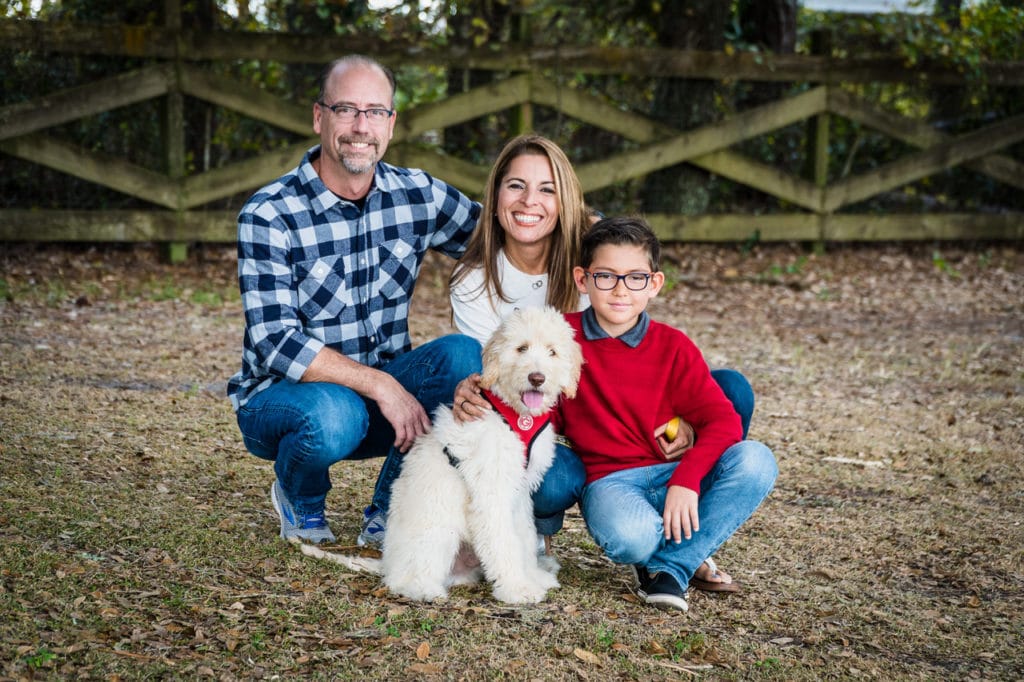 Tucker is the first family dog to the Brophy family and is loved through and through. They feel very strongly that Tucker was a sweet gift from above. Their son, Colin, is very protected by Tucker, and they are truly BFFs! The family has to be very careful not to leave any socks around the house since Tucker is drawn to them, and if you chase him, he will eat them immediately. Perhaps this was a good side dish to his bed?!