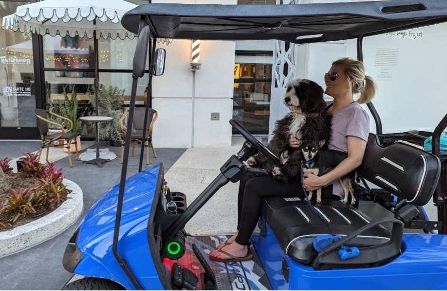 You may have seen this family riding around town on their golf cart. In the evenings, they take their family rides around the lakes with the “boys.” You cannot miss Kevin, since he is black and white and looks like a panda bear. It might be hard to tell who is more excited about the ride, Katie or Kevin!! Be sure to wave and yell “hello” the next time you see this “happy cart.” Katie and Ashley love bringing their “boys” to the great dog parks in the Nonahood and have thoughts of planning a “happy hour” for the “Paw-Rents” in the future, so stay tuned for the “Pooch and Paw-Rents” social coming to a park near you!!! I’m sure Ashley will handle the operations of the event, but Katie, please make sure it doesn’t rain that day!