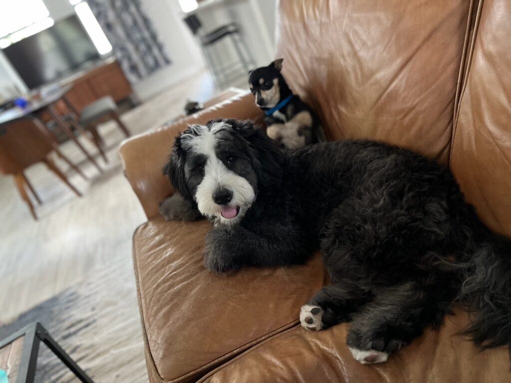 As it is said, “When one door closes, another one opens” – and that is exactly the story of Kevin, the 8-month-old Bernedoodle who joined this family. When Juan, the sweet 17-year-old Chihuahua passed away, not only were Katie Garner and her fiancé, Ashley Romalho, at a loss but their other pooch, Anderson, also had anxiety over the loss. Anyone who has had to say good-bye to their fur baby knows this all too well. Enter Kevin, the extremely energetic, mischievous Bernedoodle who seemed to immediately fill the void!