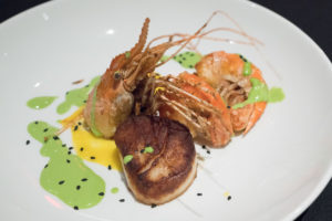 - Hopgasmic IPA + Freshwater prawns and scallop, blistered shishito, orange habanero gastrique.