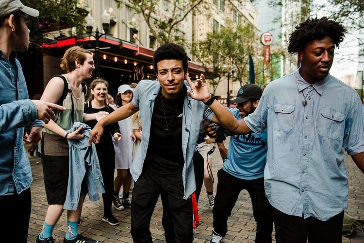 - High-energy acrobatic performances on a large scaffolding structure in the middle of Orange Avenue.