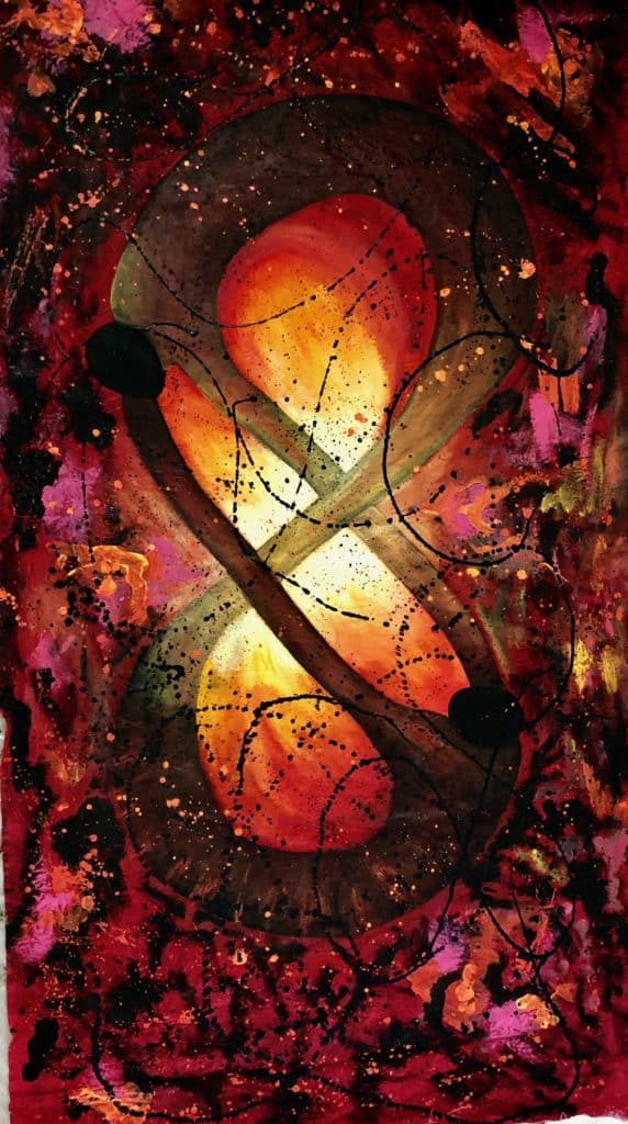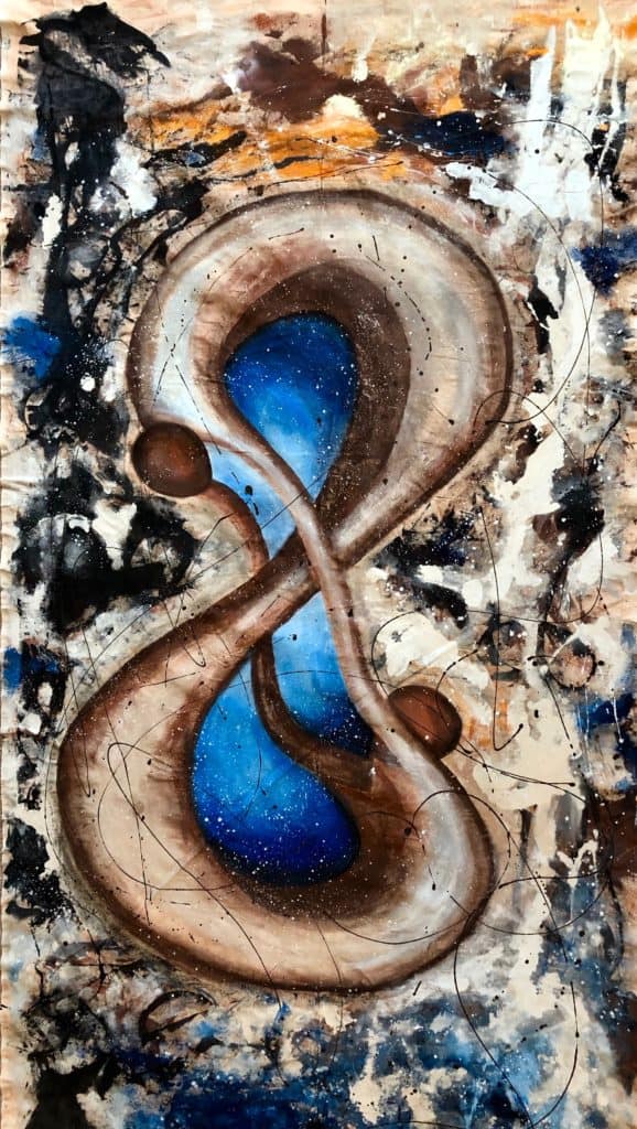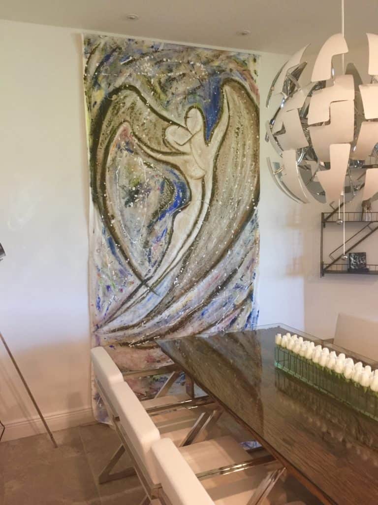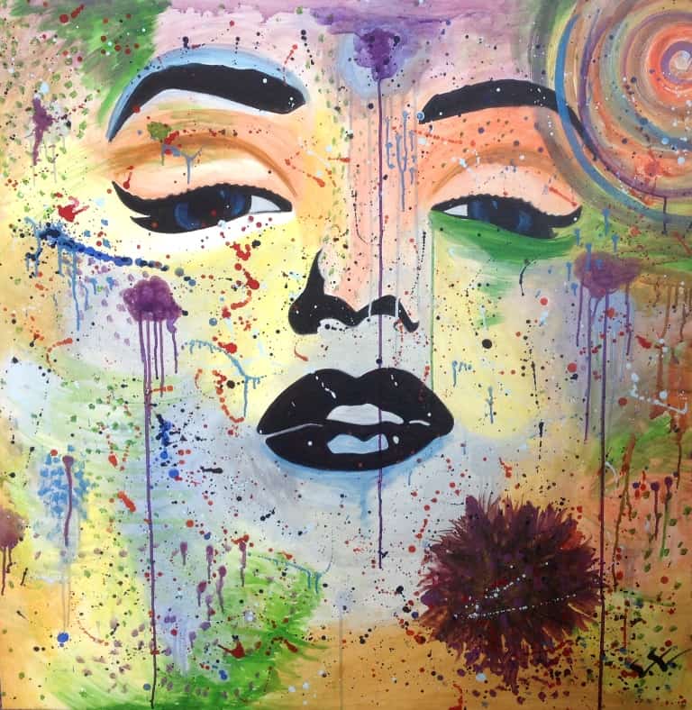 VV: The painting shown at [the] Louvre [titled “The Colors of Louvre”] for the obvious reasons was the work that [I’m] most proud [of]. However, other jobs are a source of great pride as well. “The Explosion of Marilyn Monroe” is one of them. I have [a] passion for painting faces and self-portraits. “The Universe Infinite” depicting the universe and the others that [were] done as a series like “Infinite on Fire,” “Infinite in Nature,” and “Infinite in Minerals.” Actually, one of my favorites is “My Protective Angel,” which is very special for me. I’ve [painted it] for my husband. I painted a couple in love, toward the heights, with open arms, like wings protecting me in a shape of a heart.