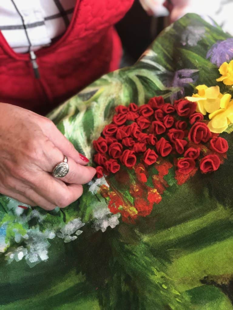 VV: As I like to think outside the box, I’m working with 3D paintings. Literally, first I paint the canvas, then I do embroidery over it. New to the world of art, but almost back to the origins, it reminds me [of] my grandma embroidering and I’m teaching my students this new way of doing art and they are delighted. I give private and group classes from four years old to 70 years old. The motto of these classes [are] “discover the artist hidden inside you.” My students are enjoying [the classes] so much that I have plans to open a new school where I can share my work with a larger number [of] people and so I can spread the art and enjoyment of this emotion.