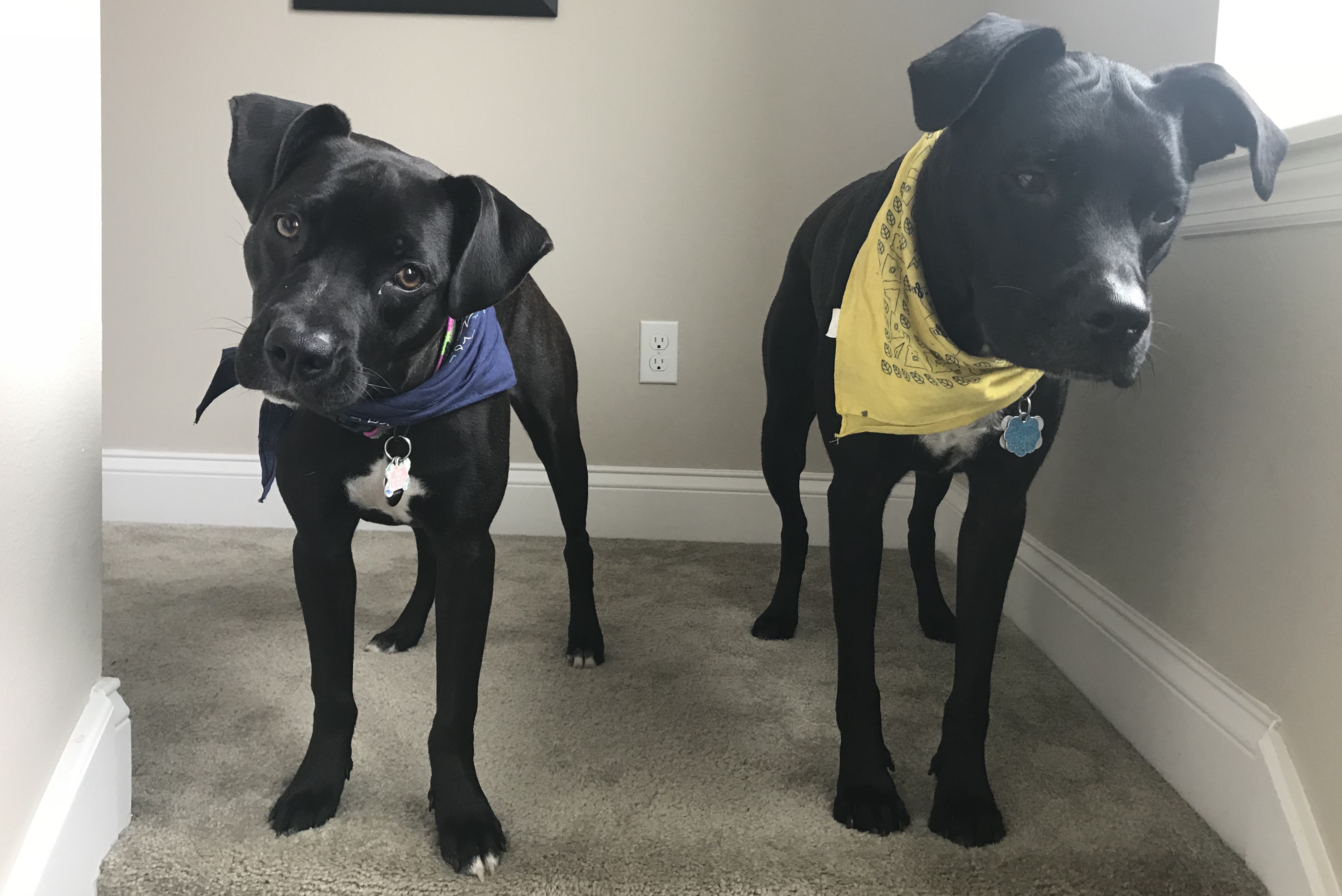 Lumi (three years old, pictured on the right) is an outdoorsy girl born in New Mexico, raised in Colorado and now a Florida girl. She loves snowboarding and hiking just as much as she loves swimming at the beach (but not the pool … pools are scary). Aria (one year old, pictured on the left) is the baby of the house, and she knows it. She is polite and very girly. She loves to cuddle and snuggle, and she loves her daddy. They’re both avid runners and protectors of the house. Make sure to say hello if you see them out and about in Laureate Park!