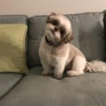 Auggie is hilarious, sweet, loves kids – especially babies – and sunbathing. Auggie can be seen hanging out at Canvas every day. He frequents the Canvas patio deck inspecting for lizards and ensuring it’s safe for the lunch crowd. When he’s finished nosing around, I say, “Let’s go see your girlfriends,” and Auggie heads for Canvas’ front door. His girlfriends at the coffee bar and hostess stand are always excited to see him. Off he goes to socialize, be petted, loved on, and sometimes he will hop up on the sofa to hang out. He looks at me like I should bring him a snack and coffee. Oh, Auggie!