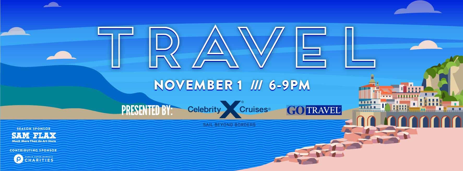 The event will feature local art inspired by or experienced through travel. This event is presented by: Celebrity Cruises and Go Travel.