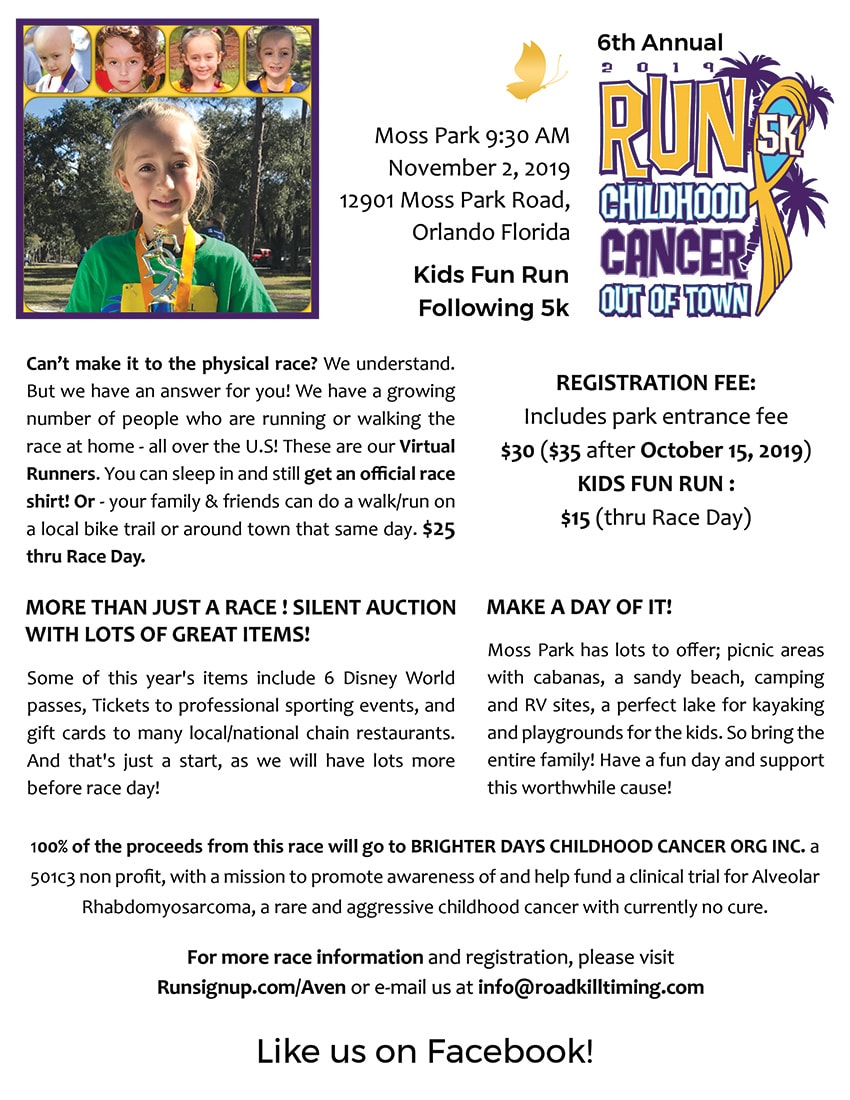 For more information and registration, please visit Runsignup.com/Aven or email us at info@roadkilltiming.com