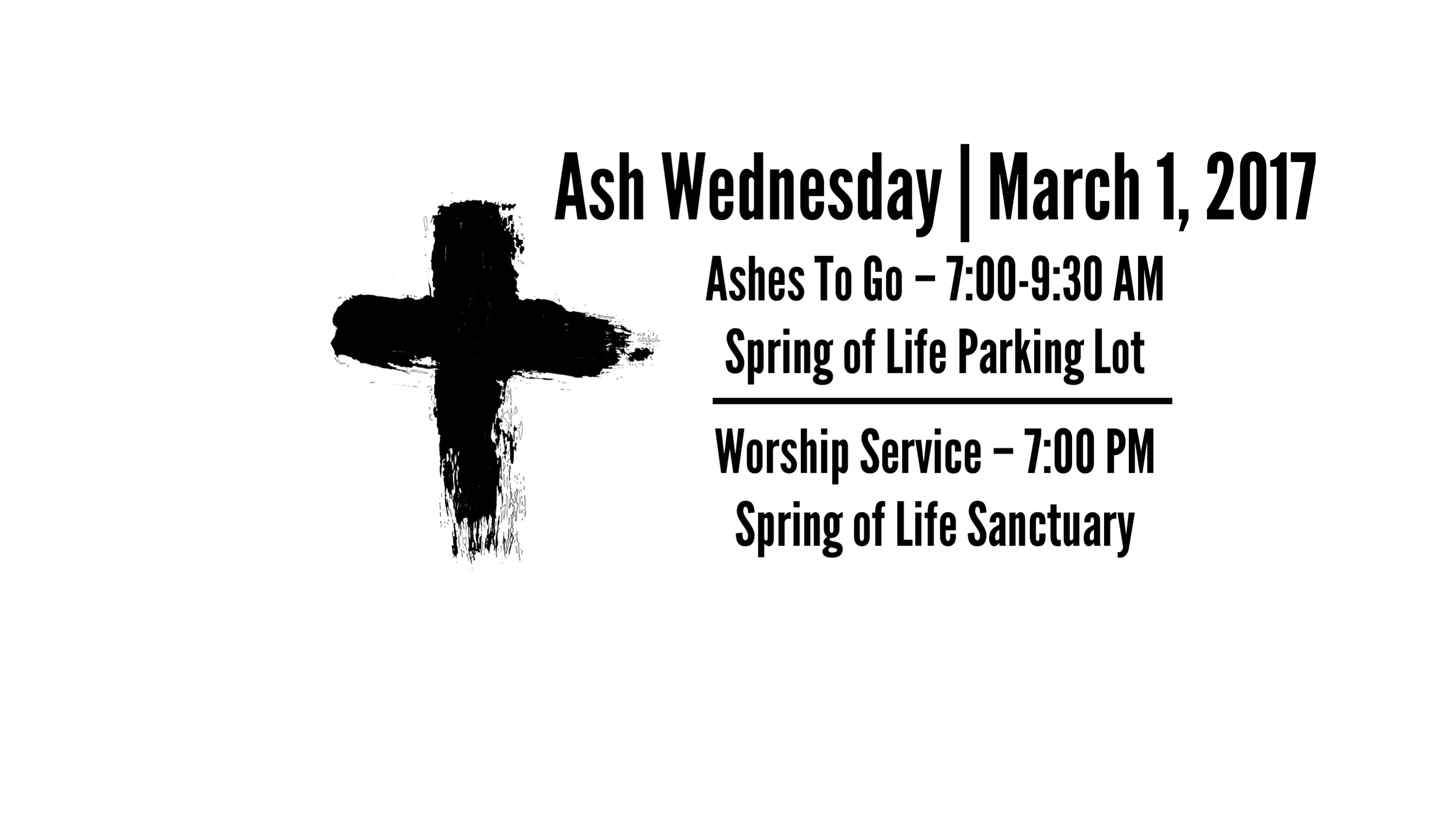 On Wednesday, March 1, you are invited to join Spring of Life United Methodist Church to begin the Christian season of Lent. Stop by our parking lot for “Ashes To Go” between 7 am and 9:30 am – Pastor Josh will be available to pray with you and share the ashes.