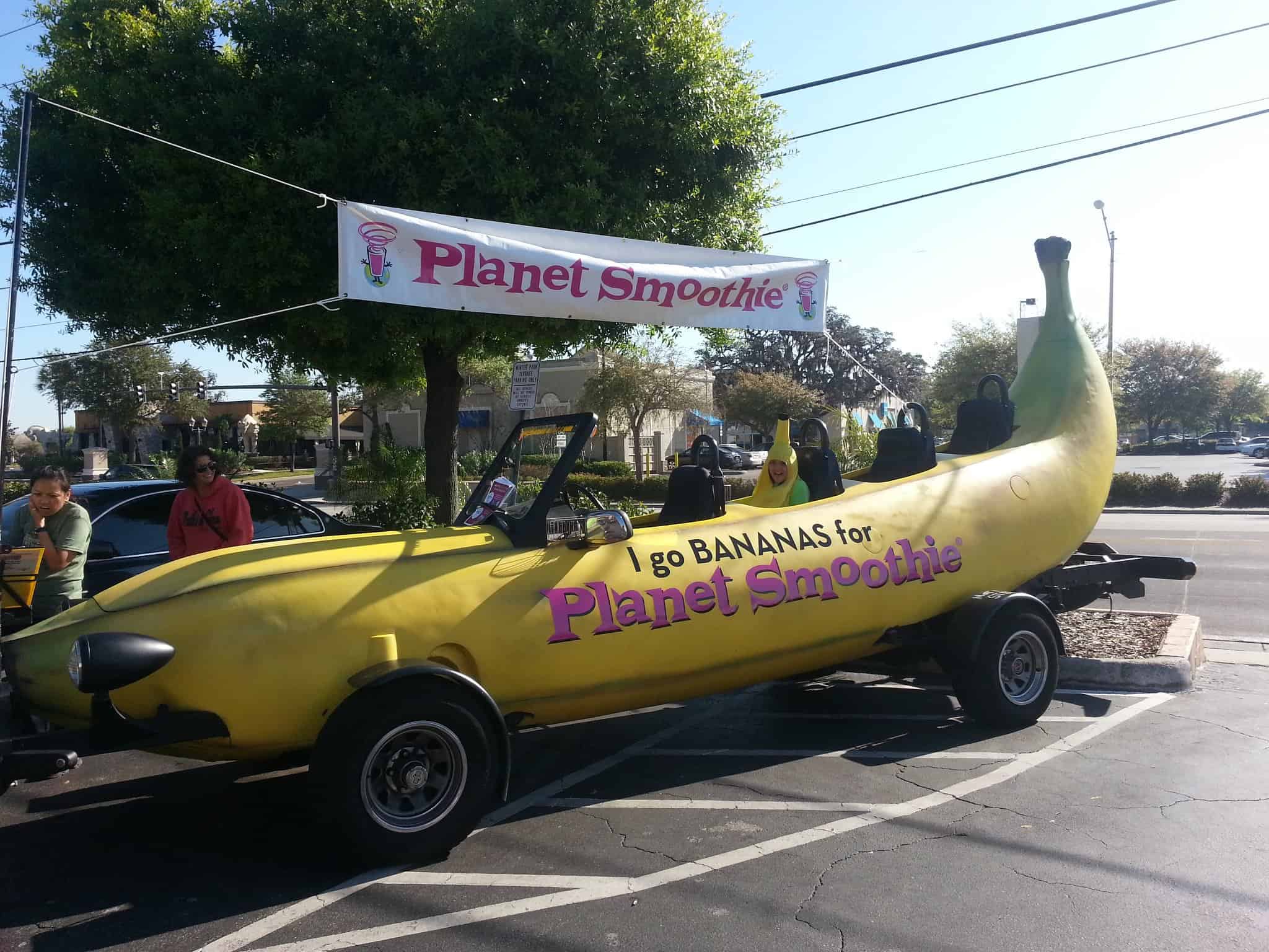 Come see and ride the Big Banana Car at Planet Smoothie on Saturday, February 23rd, from 10 AM to 6 PM. Show the staff your photo with the Banana car or Cupman for discounts to delicious smoothies. Enter a raffle to win two months of smoothies at 50% off. Smoothie specials all day long!