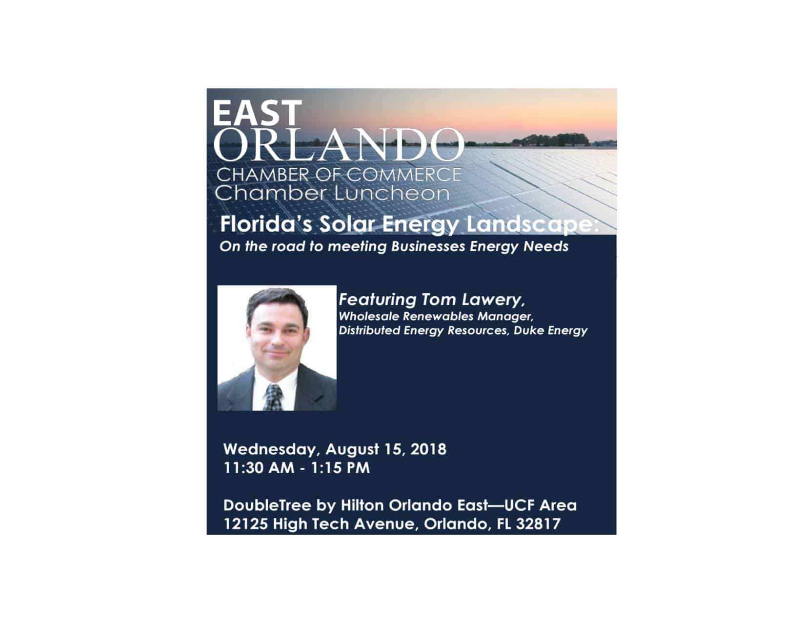Following up from our 440 Corridor Update earlier in the year where we focused on solar energy, August’s Chamber Luncheon focuses on how the new solar energy trend can be beneficial to your business. Tom Lawery, Wholesale Renewable Manager, Distributed Energy Resources, Duke Energy, will be giving you all the hot topics that will effect your business when talking solar.