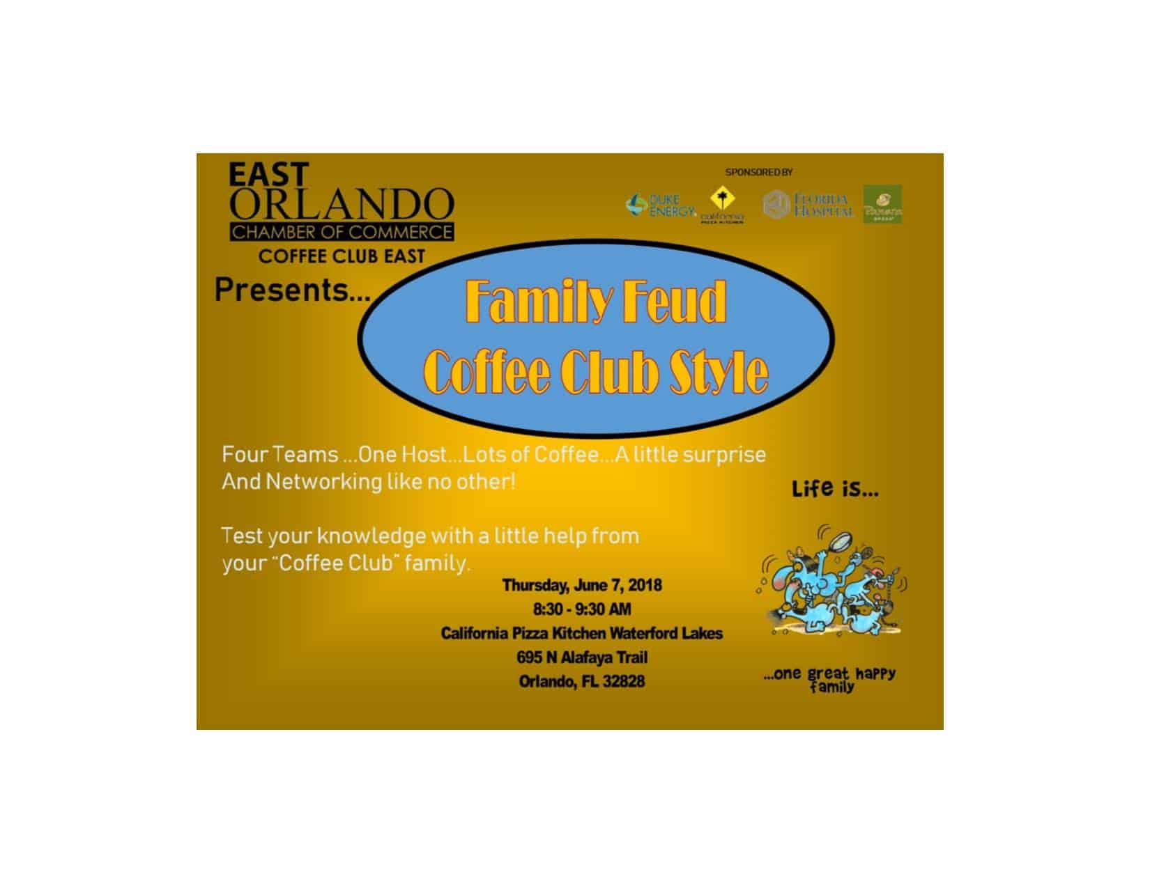 Join us on June 7, 2018, from 8:30 am to 9:30 am to play “Family Feud.” Team up with your “Coffee Club Family” to win a sweet surprise. So brush up on your trivia, you’re going to need it.