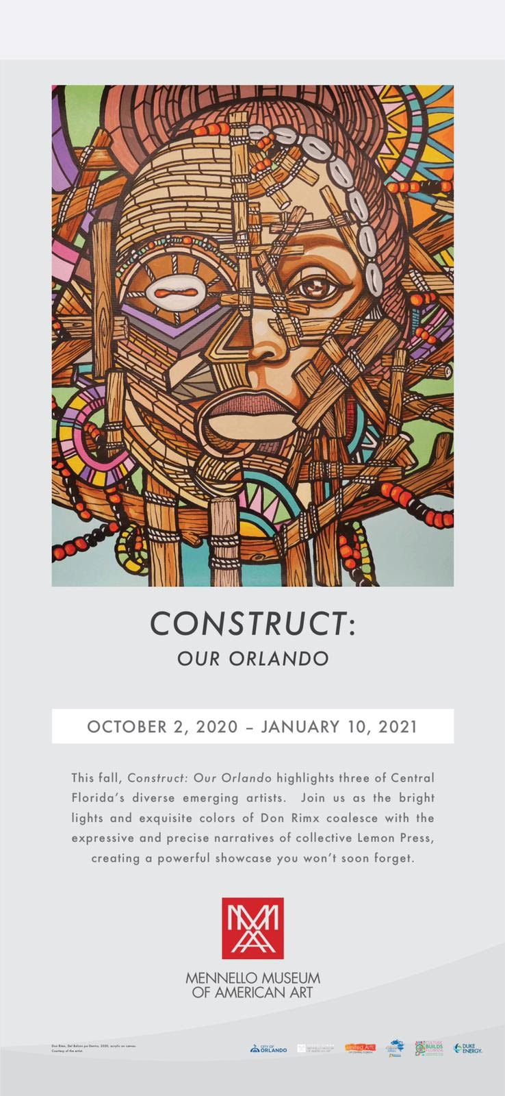 This fall, Construct: Our Orlando highlights three of Central Florida’s diverse emerging artists. Join us as the bright lights and exquisite colors of Don Rmx coalesce with the expressive and precise narratives of collective Lemon Press, creating a powerful showcase you won’t soon forget.