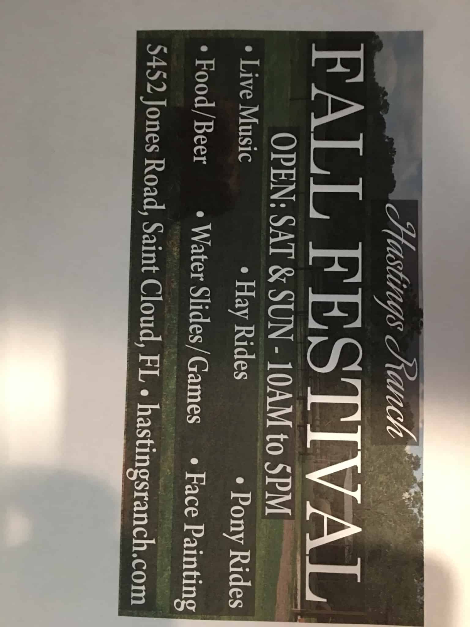 A Fall festival with food and merchandise vendors, live bands, hay rides, a hay maze, and face painting. We also have pony rides and a small petting zoo. This is a great time for families in the area.