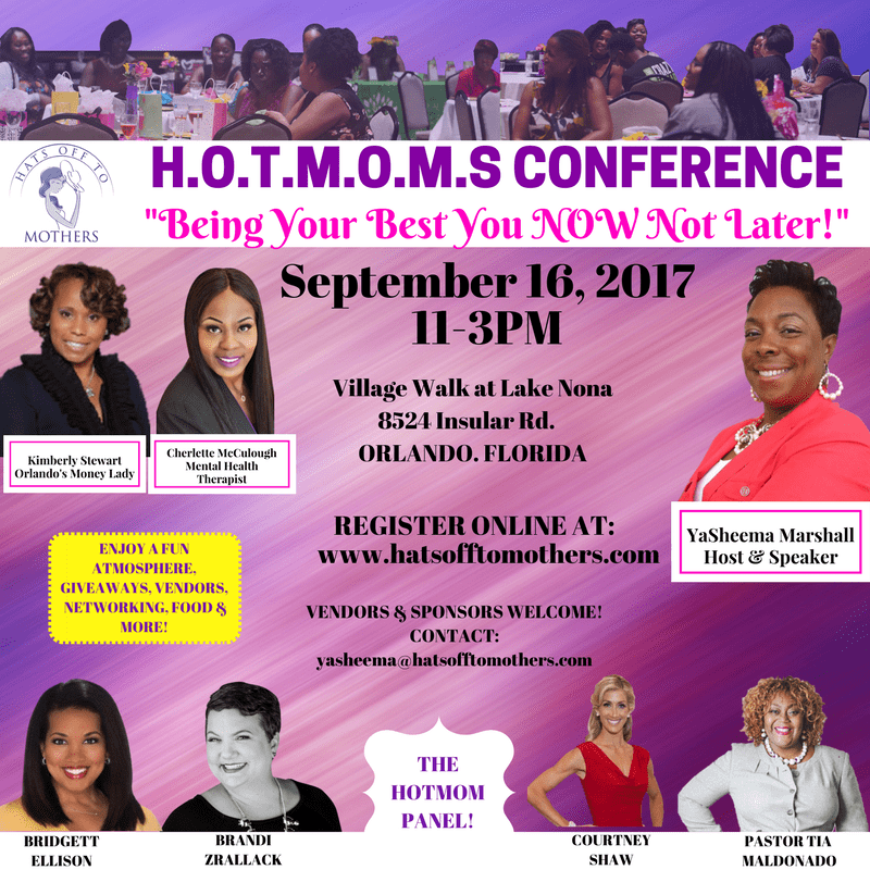 Our 4th Annual “H.O.T.M.O.M.S. CONFERENCE” is for mothers who are ready to take some time for themselves to relax, reflect and rejuvenate. This LIVE conference will be power-packed with fun, educational speakers, laughter, inspirational talks, prizes, vendors and much more. This is the ONLY event that focuses solely on empowering, educating and uplifting the mother for ALL that she does and gives to her family & community! So don’t miss this premiere motherhood empowerment event of the year! You Deserve It! You’re Worth It! You Need It! Just show up and we’ll do the rest! The H.O.T.M.O.M.S. Conference will bring mothers together from different nationalities, communities, age groups, and economical statuses to be inspired, empowered and equipped to continue to positively influence their families and communities while loving themselves.