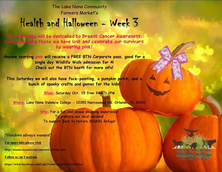 Come dressed in pink this Saturday for breast cancer awareness! While visiting our unique vendors, let the kids get their faces painted, pick a pumpkin in our pumpkin patch, create ghostly art, and win prizes from playing our spooky game!
