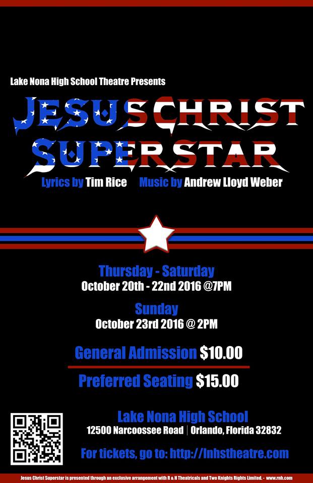 What if Jesus was a man among us in the US in the year 2016?* Come see Lake Nona High School’s production of ‘Jesus Christ Superstar’ October 20th-23rd and find out what the buzz is all about!