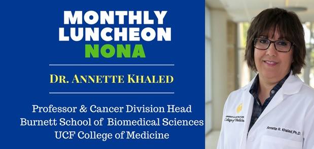 Guest Speaker at today’s luncheon is Dr. Annette Khaled, Professor & Head of Cancer Division at the Burnett School of Biomedical Sciences, UCF.