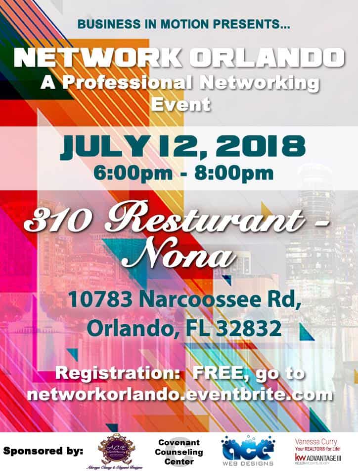 Business in Motion is excited to present NETWORK ORLANDO! Join us as we connect with other Professionals and expand your networking circle. Please share this event with all of your peers and colleagues. Also, remember to bring your business cards for exchange!