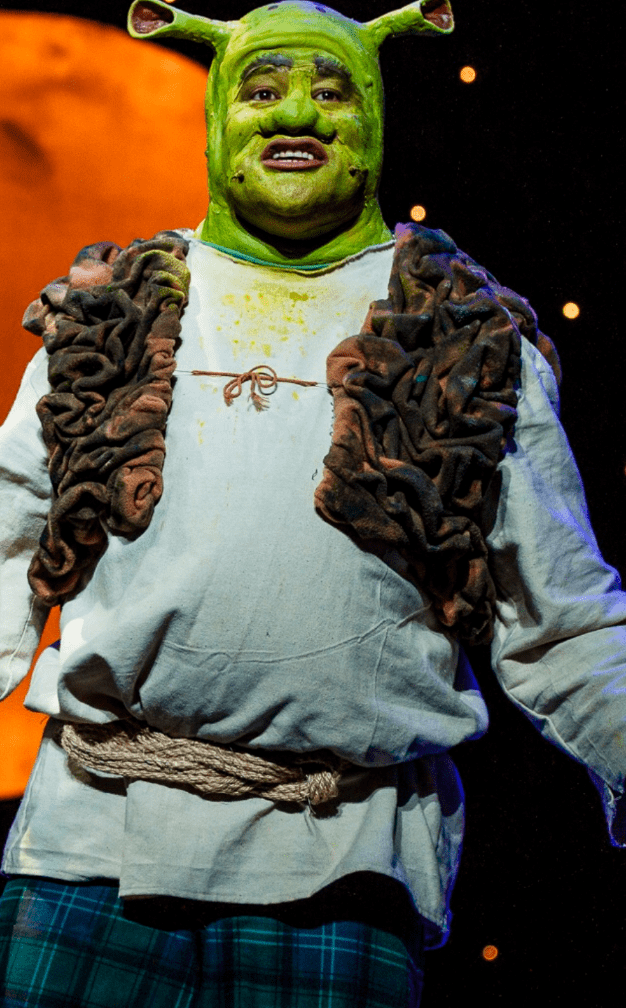 “Once upon a time, there was a little ogre named Shrek….” And thus begins the tale of an unlikely hero who finds himself on a life-changing journey alongside a wisecracking Donkey and a feisty princess who resists her rescue. Throw in a short-tempered bad guy, a cookie with an attitude and over a dozen other fairy tale misfits, and you’ve got the kind of mess that calls for a real hero. Luckily, there’s one on hand… and his name is Shrek.”