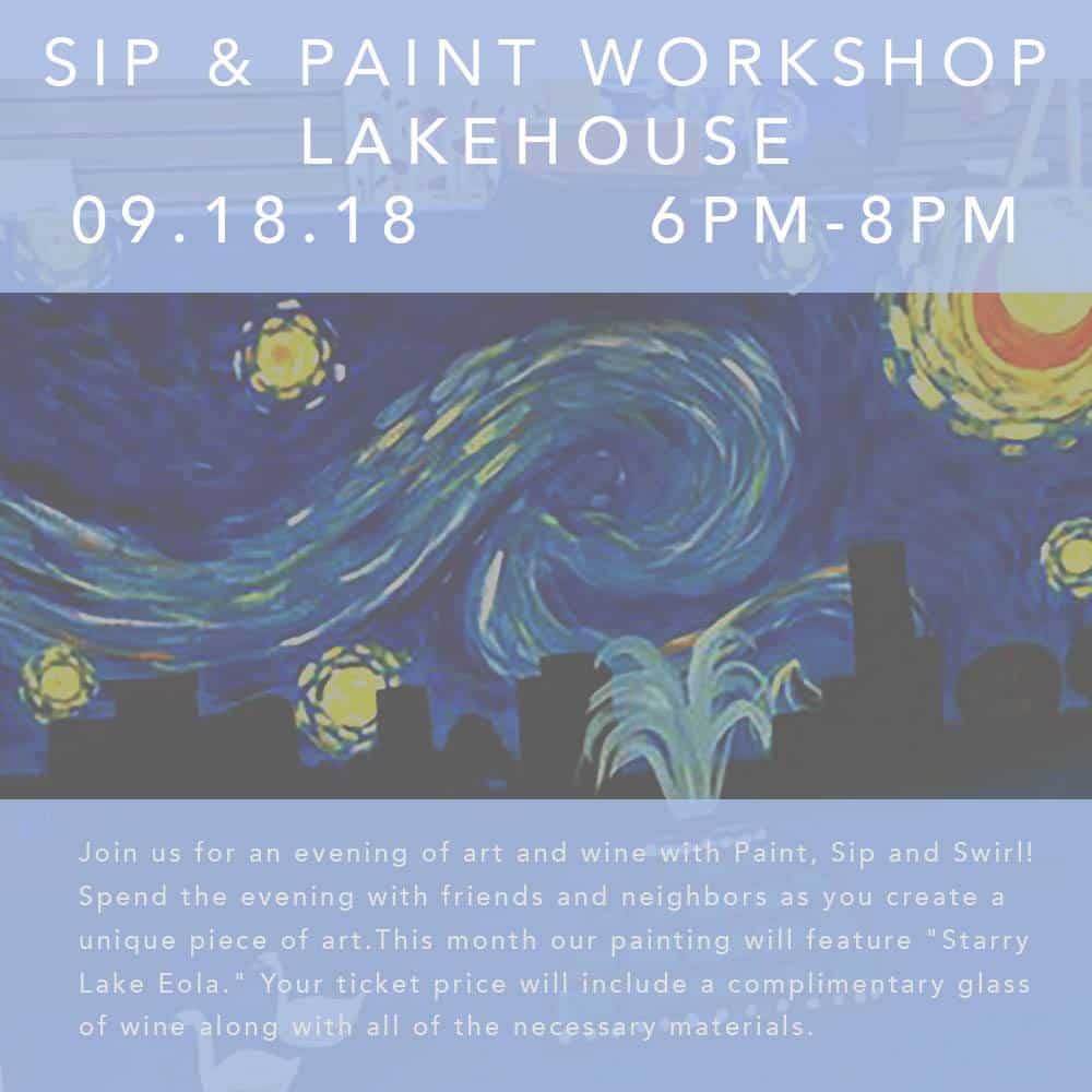 Join us for an evening of art and wine with Paint, Sip and Swirl! Spend the evening with friends and neighbors as you create a unique piece of art to brighten up your home.