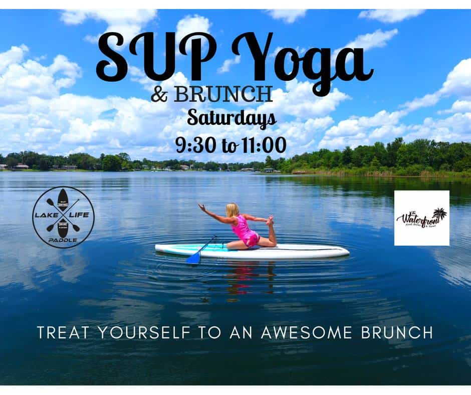 SUP Yoga at The Waterfront. This Yoga on the water is appropriate for all levels. The beautiful water of Lake Jennie Jewell is the backdrop for a relaxing yoga and meditation before your complimentary mimosa. Stay and enjoy an amazing brunch at The Waterfront. Limited board availability. Reserve your board ahead of time at www.lakelifepaddle.com. $25 per person with board/$15 with your own board.