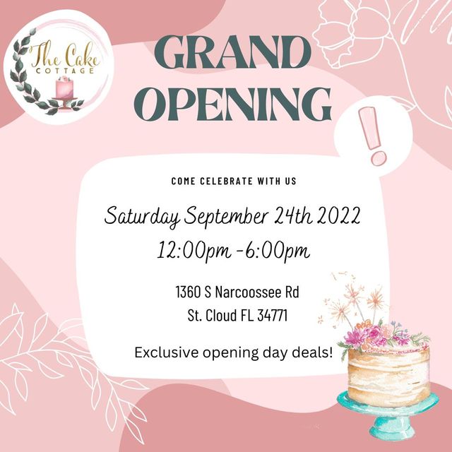 The Cake Cottage 1360 S Narcoossee Rd, St. CloudJoin us for exclusive opening day deals!