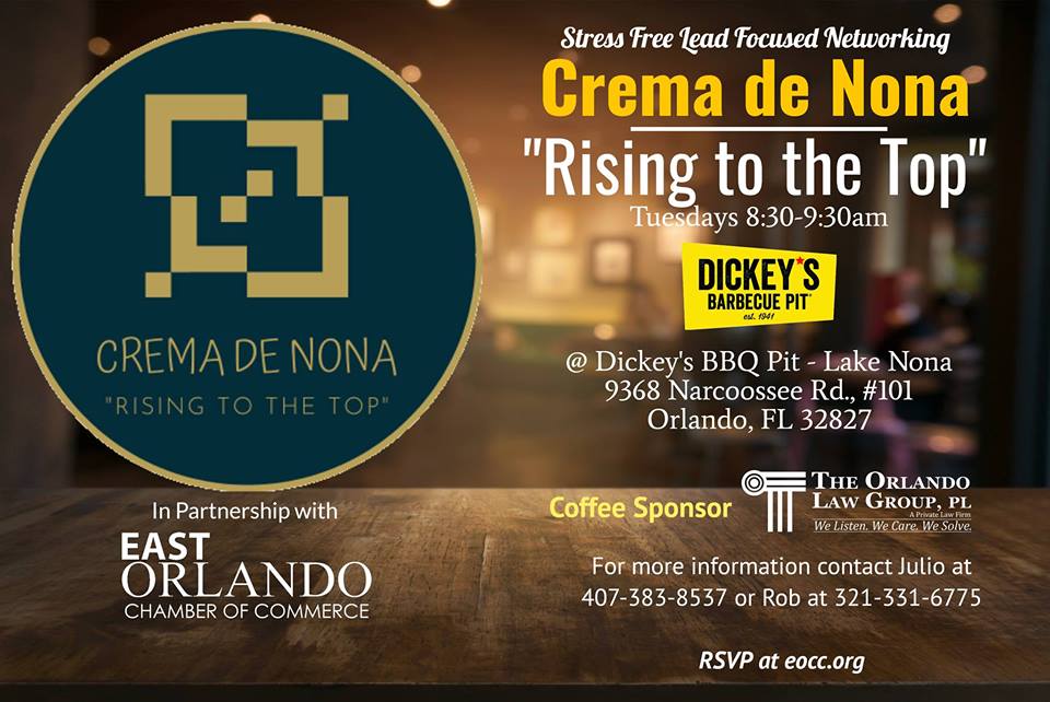 Join us for La Crema de Nona, a weekly* networking group in Lake Nona in partnership with the East Orlando Chamber of Commerce. Stress free lead focused networking with professional […]