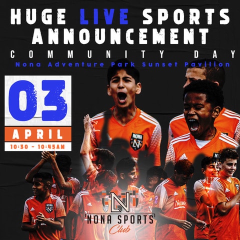 Nona Adventure Park 14086 Centerline Drive, Orlando, Florida 32827, Lake Nona, United StatesJoin us for a HUGE live sports announcement! Location: Nona Adventure Park Sunset Pavilion Date: April 03, 2021 Time: 10:30AM - 10:45AM