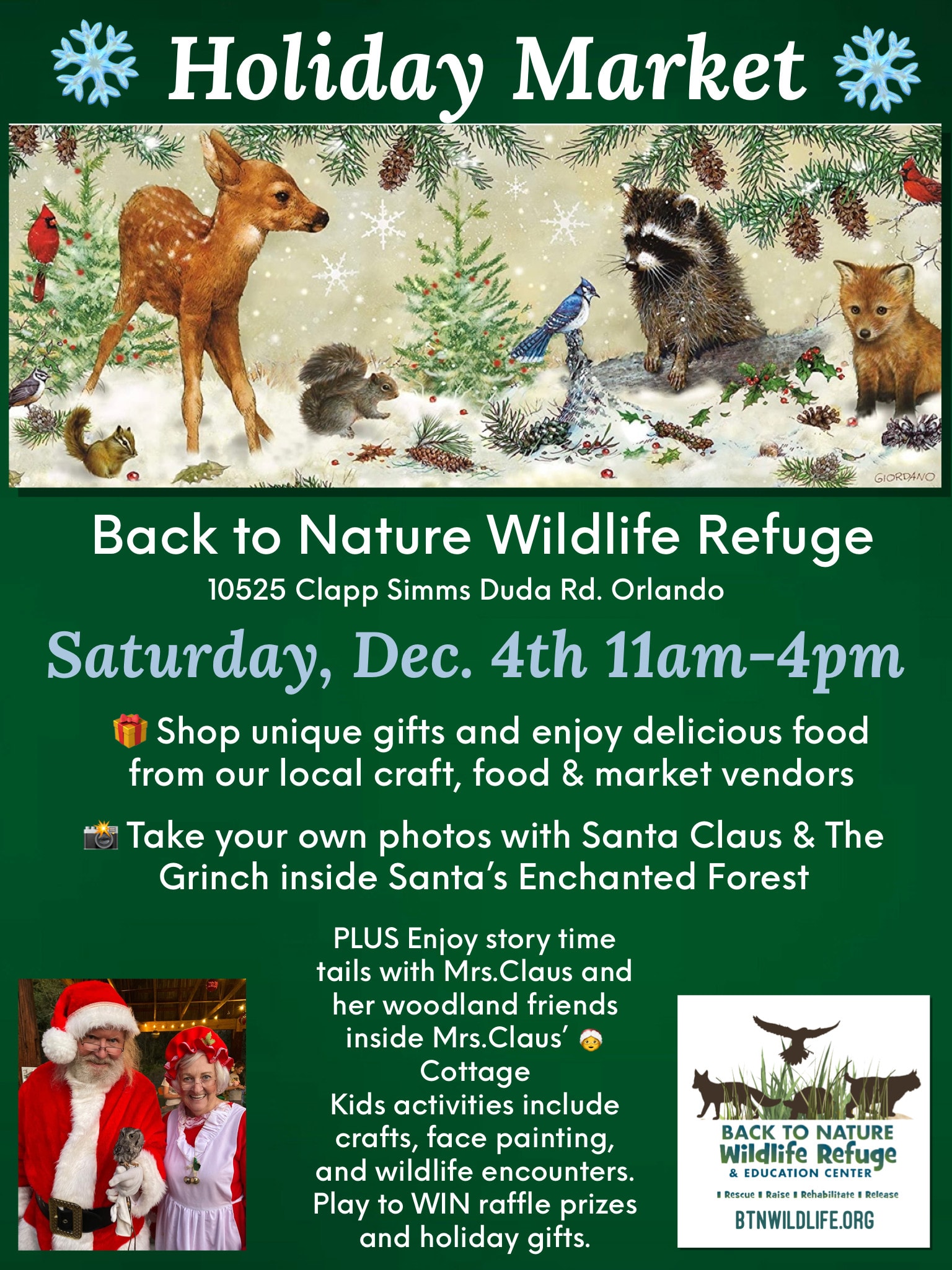 Visit Santa's Enchanted Forest for an opportunity to take photos with Santa and the Grinch! Then, stop inside Mrs. Claus' Cottage for story time! Shop unique gifts and enjoy delicious food from our local artisan and food market vendors. Plus, there are kid's activities, including crafts and face painting as well as wildlife encounters and […]