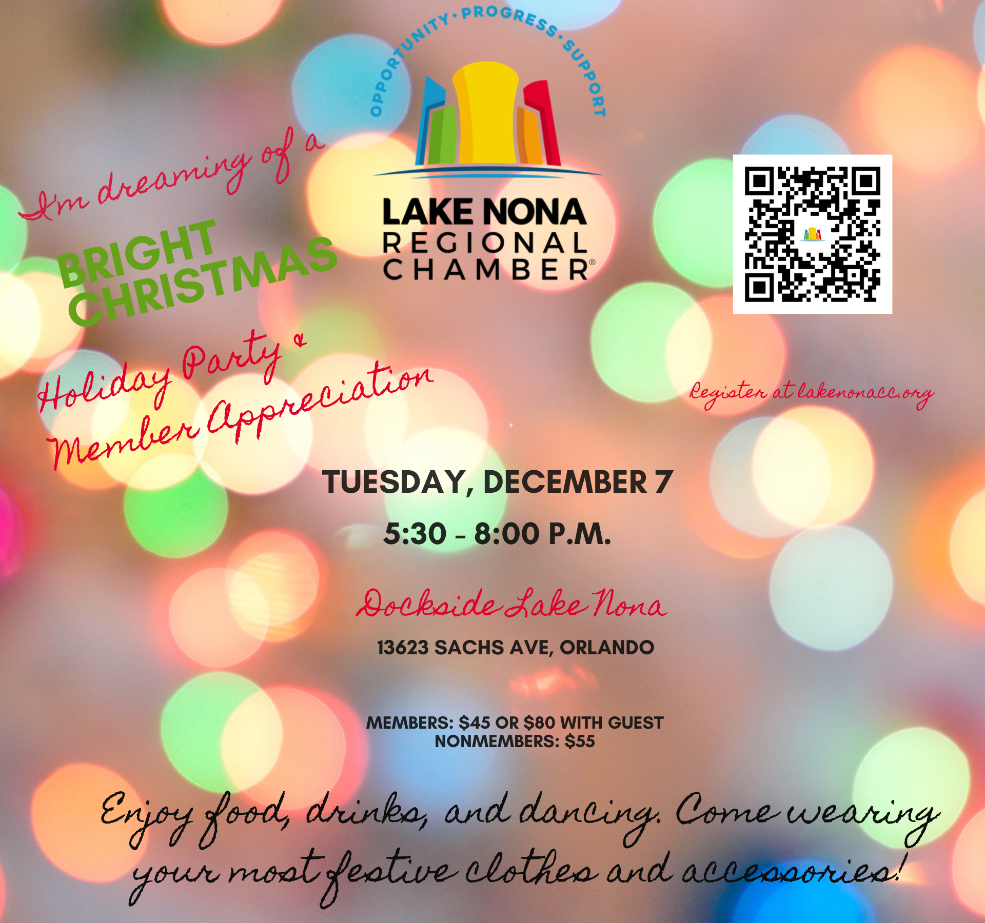 Holiday Party and Member Appreciation Dockside Lake Nona Members: $45 and $80 with Guest Non-Members; $55 Enjoy Food, Drinks, and Dancing! Come wearing your most festive clothes and accessories