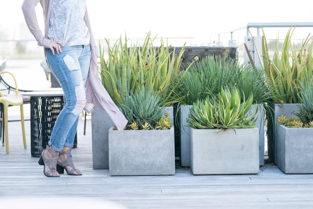 These are my absolute favorite jeans from one of my favorite sources, Buckle. I wear them with almost everything. They are the most comfortable pair of bottoms I own, even with the holes. Wear a silver suede top to make it a date night outfit. Add a light jacket or cardigan for our Florida cooler evenings. You can never go wrong with a pair of torn and slouchy jeans.