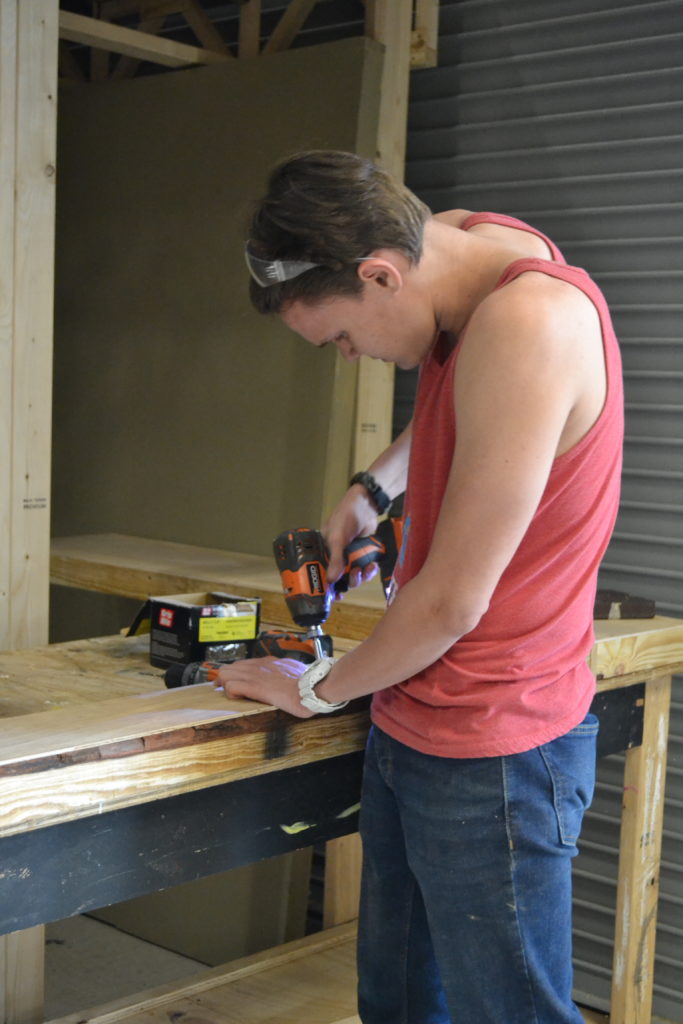 I visited prior to the set being fully built, and I was able to see the technicians busy painting, sawing and building. One of my neighbor’s daughters, Addie Jagnow, greeted me when she saw me arrive. She was painting, and as a freshman at Lake Nona High School, she is excited to participate in the spring musical. I also spoke to Alec Hampshire, who is the build captain for In the Heights. He was drilling boards and said, “Theater changed my future plans and taught me that I’m a good leader. I want to go into carpentry and build things.”