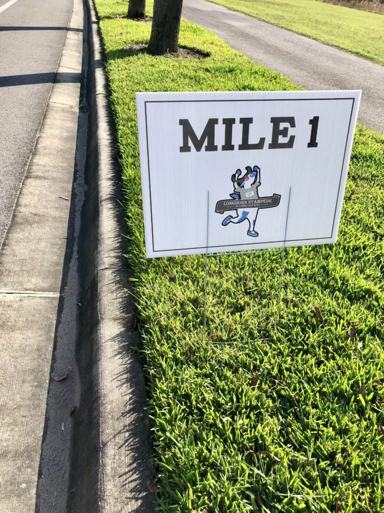 The best way to write about an event is to take part in it yourself and that’s exactly what I did. I arrived at Laureate Park Elementary fully aware of what I was getting myself into, but also forgetting how long it’s been since I ran. It’s been awhile, folks, and I’ll be the first to admit that I am in fact, not a runner, but I’ll always try my hardest. I received my race number of 278 and my Longhorn Stampede t-shirt and officially looked the part. Runners/walkers were gathered to do stretches to loosen up a bit and prepare our bodies for the long journey ahead.