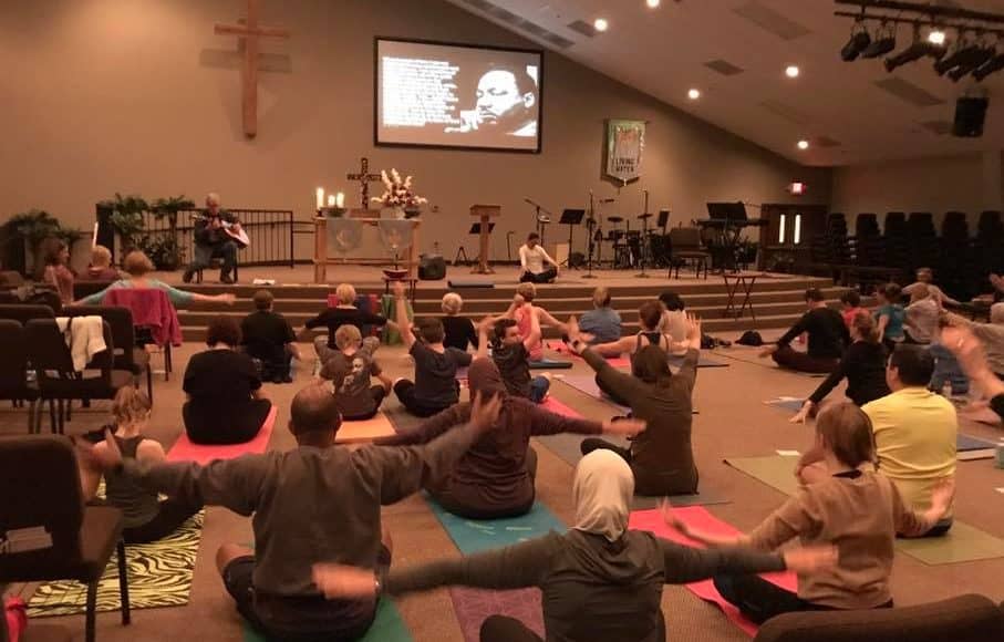 On Martin Luther King Day 2018, Interfaith Yoga Project held a free yoga class at Spring of Life Methodist Church. The event was attended by more than 45 participants ranging in age, faith and various levels of yoga experience. “The point of Interfaith Yoga Project is to bring people together who normally wouldn’t come together,” said Candace Martin, an organizer of Interfaith Yoga Project. “We meet new people and find our commonalities.”