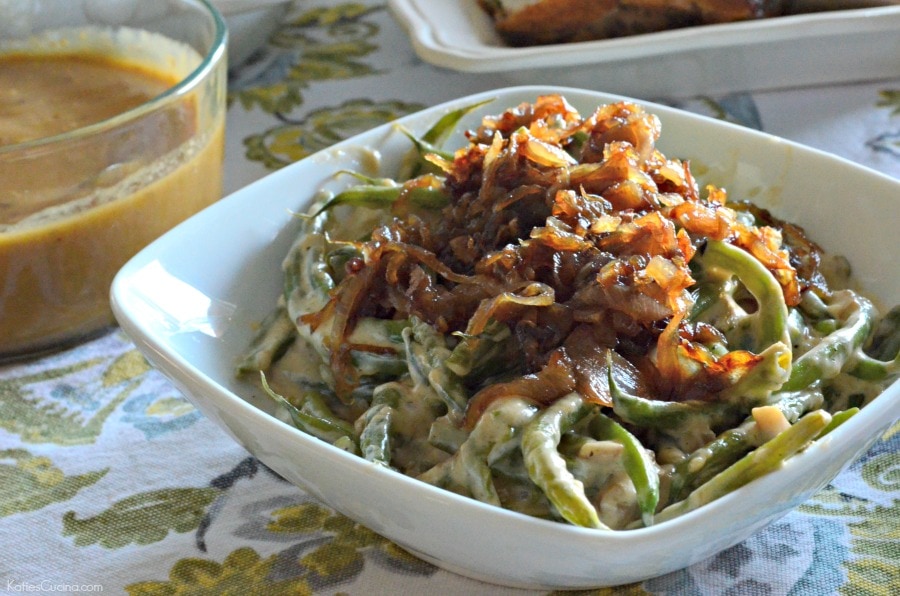 Thanksgiving is right around the corner. Have you started thinking about your menu yet? Mine is just about set. For the past few years, I’ve hosted Thanksgiving at my house for about 12-14 family members on my mom’s side. They fly from all over the United States. It’s the one time of year that we get to see all the family together. One of my cousins has a gluten allergy, so I’m always tasked with making a gluten-free menu. Most of my side dishes are naturally gluten-free. However, my cousin was never able to eat our canned green bean casserole (nothing wrong with that – I love the canned version, too)! Because of that, I decided to create a gluten-free green bean casserole recipe for her to enjoy.