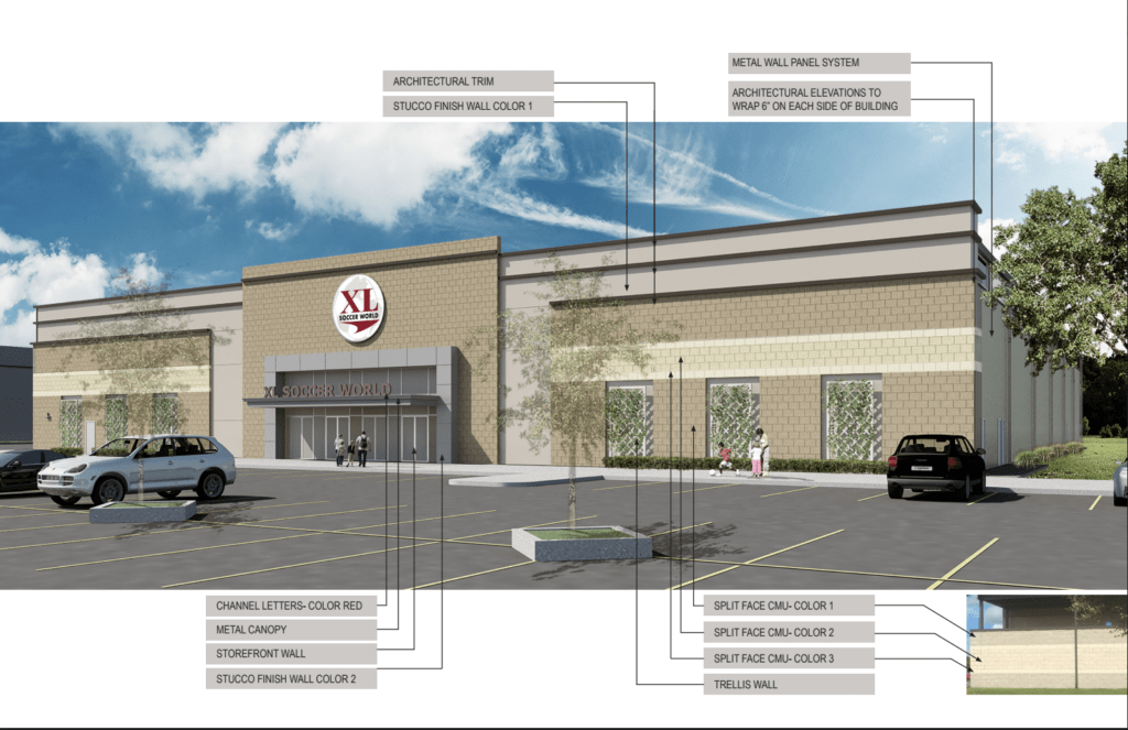 XL Soccer World will be a 50,000-square-foot building with two indoor boarded turf fields, two hard-court futsal fields, birthday party rooms and XL Sideline, which is the soccer-themed café/bar. Of course, the building is 100% air conditioned, so it’s a pleasant temperature to play in, especially for living in Florida. The hard-court futsal fields are designed to be multi-purpose, so they can transform into volleyball courts. XL Soccer World will be able to assist the local volleyball, lacrosse and flag football programs with field space, in addition to soccer.