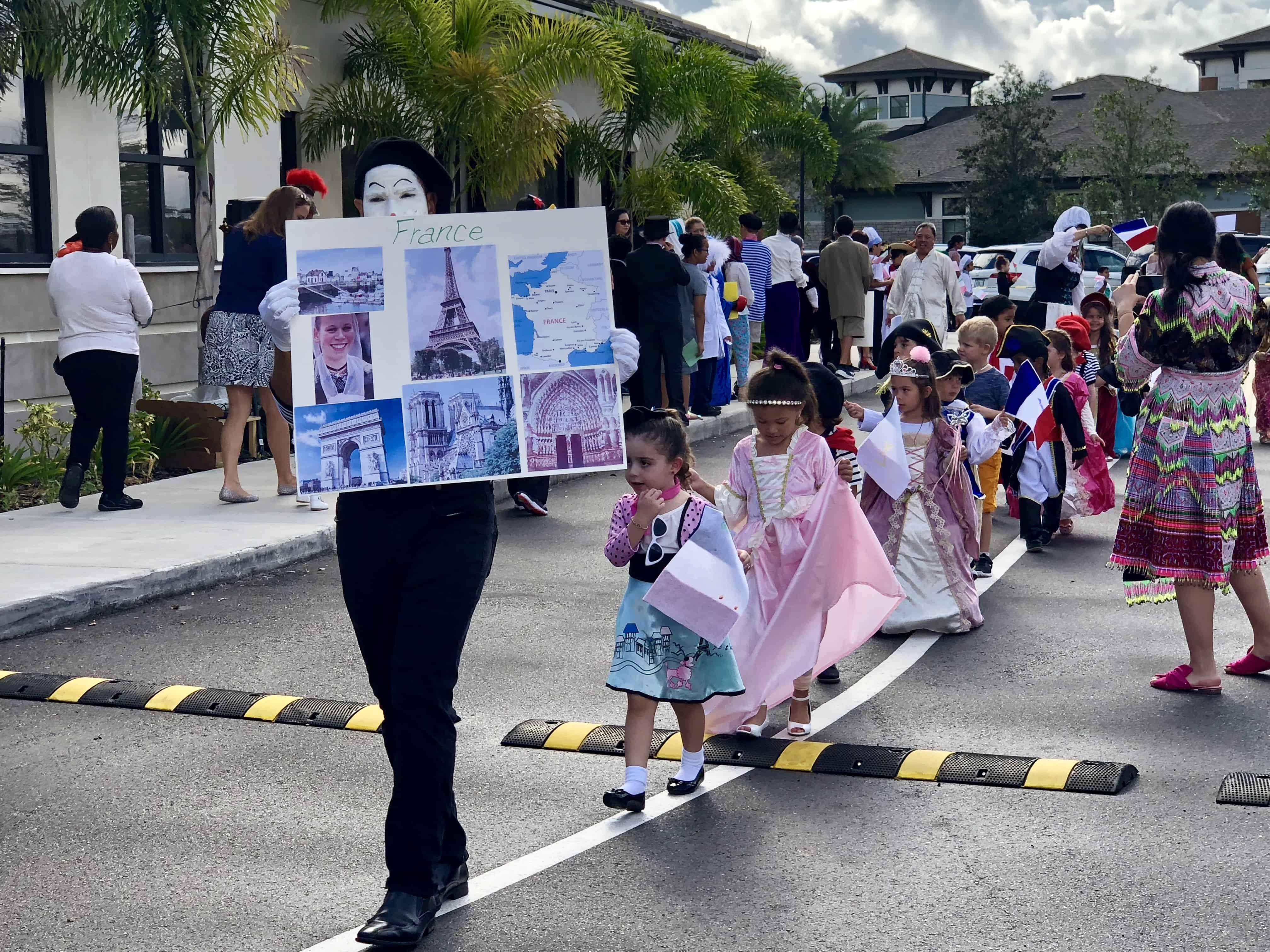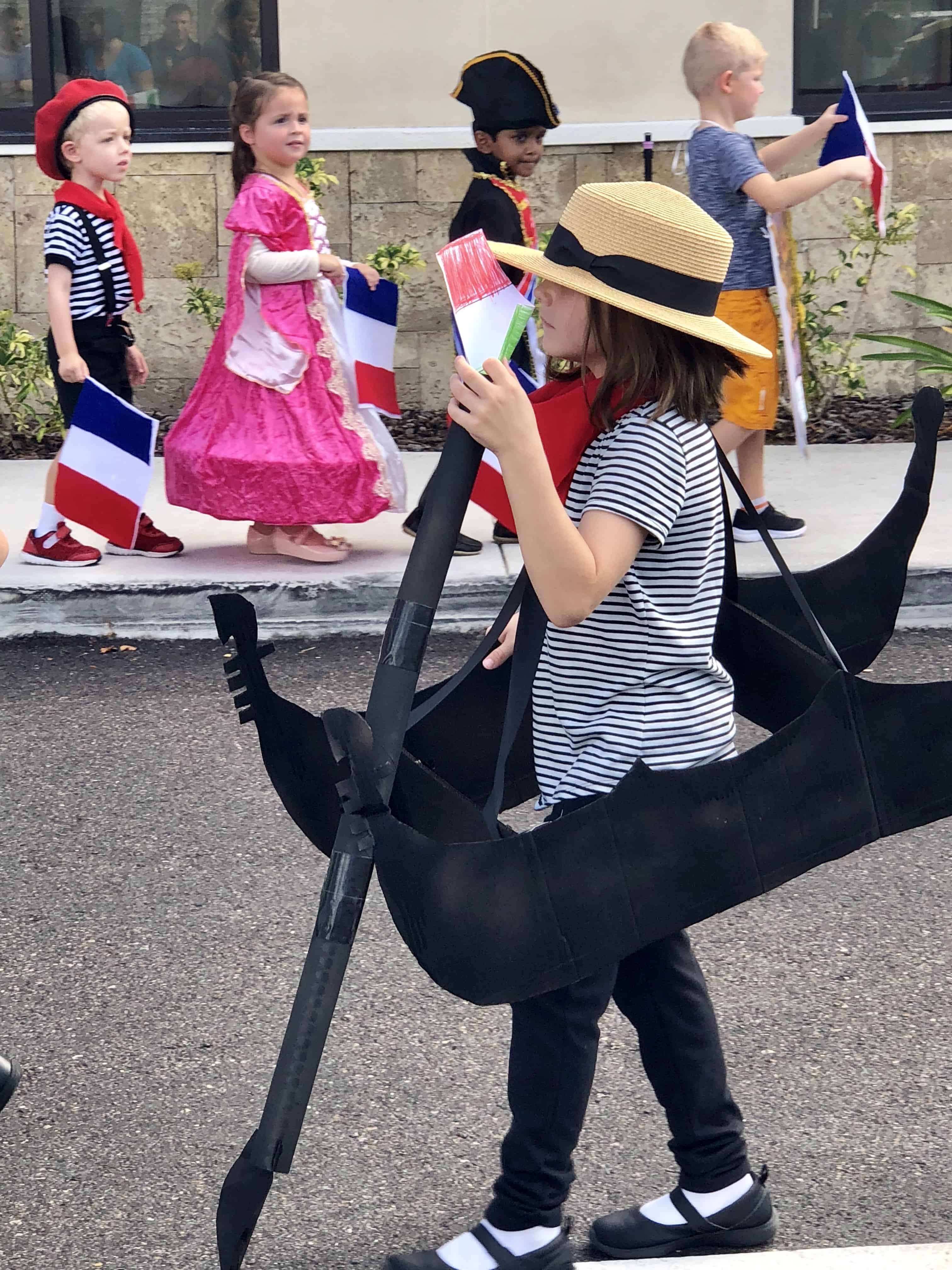 As the children who represented Italy walked down the closed-off parking lot, one would notice a young girl dressed as a gondolier with her signature black and white striped shirt and wide-brimmed hat surrounded by a cut-out gondola. Talk about adorable! Next up was France, which was led by an adult dressed as a mime. Following were little girls clad in princess dresses and boys dressed as French military men, with drawn-on mustaches and berets to complete the look.