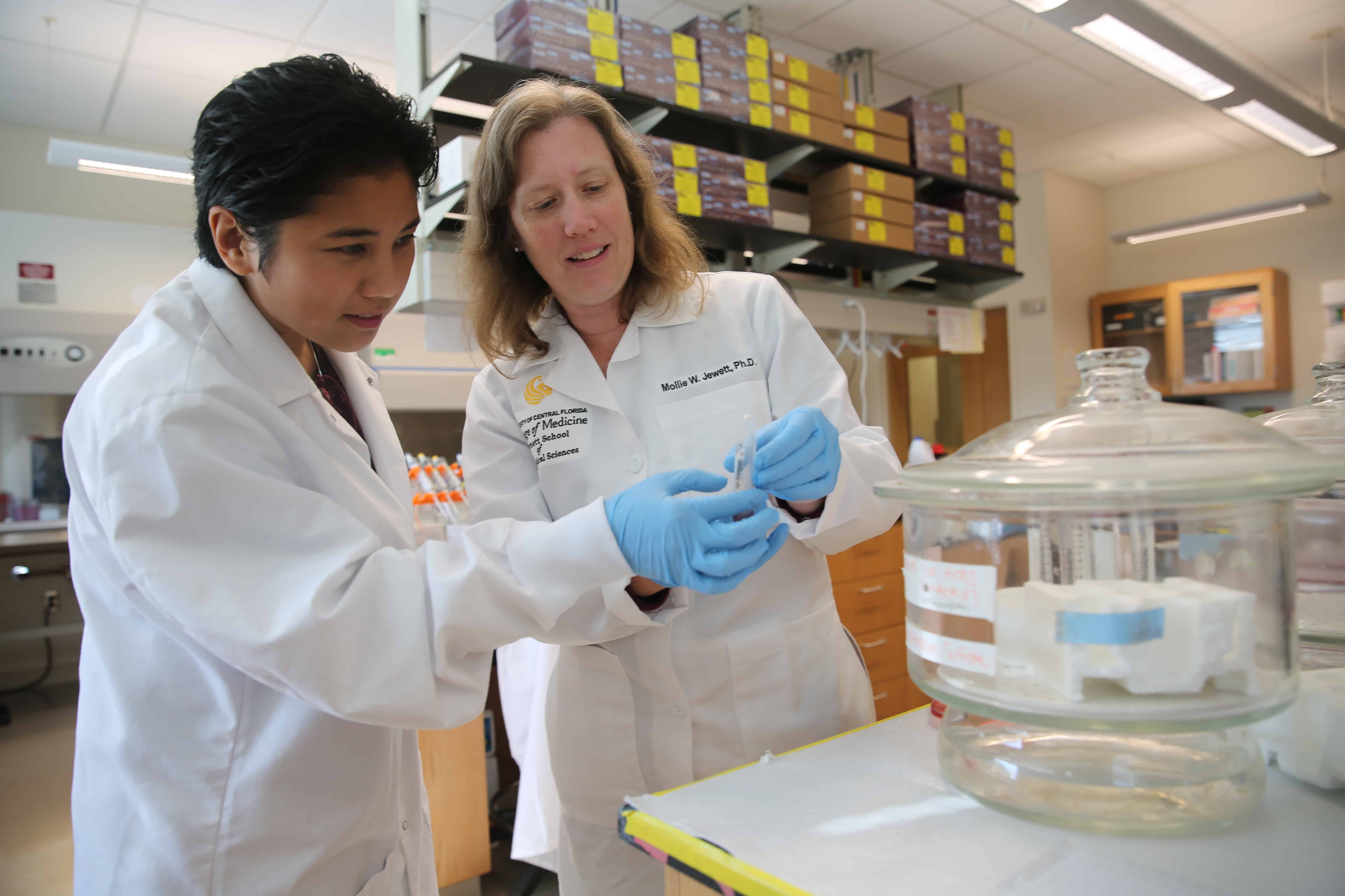Dr. Mollie Jewett, who leads our Division of Immunity and Pathogenesis Research at the Burnett School of Biomedical Sciences, focuses her research on earlier detection and better treatments for Lyme disease. Her latest grant is a five-year competitive renewal of an RO1 or Research Project Grant she received in 2013. These grants are highly competitive – only about 12 percent of applications are funded – and are designed to support innovative health research by a sole investigator who addresses a public health need.