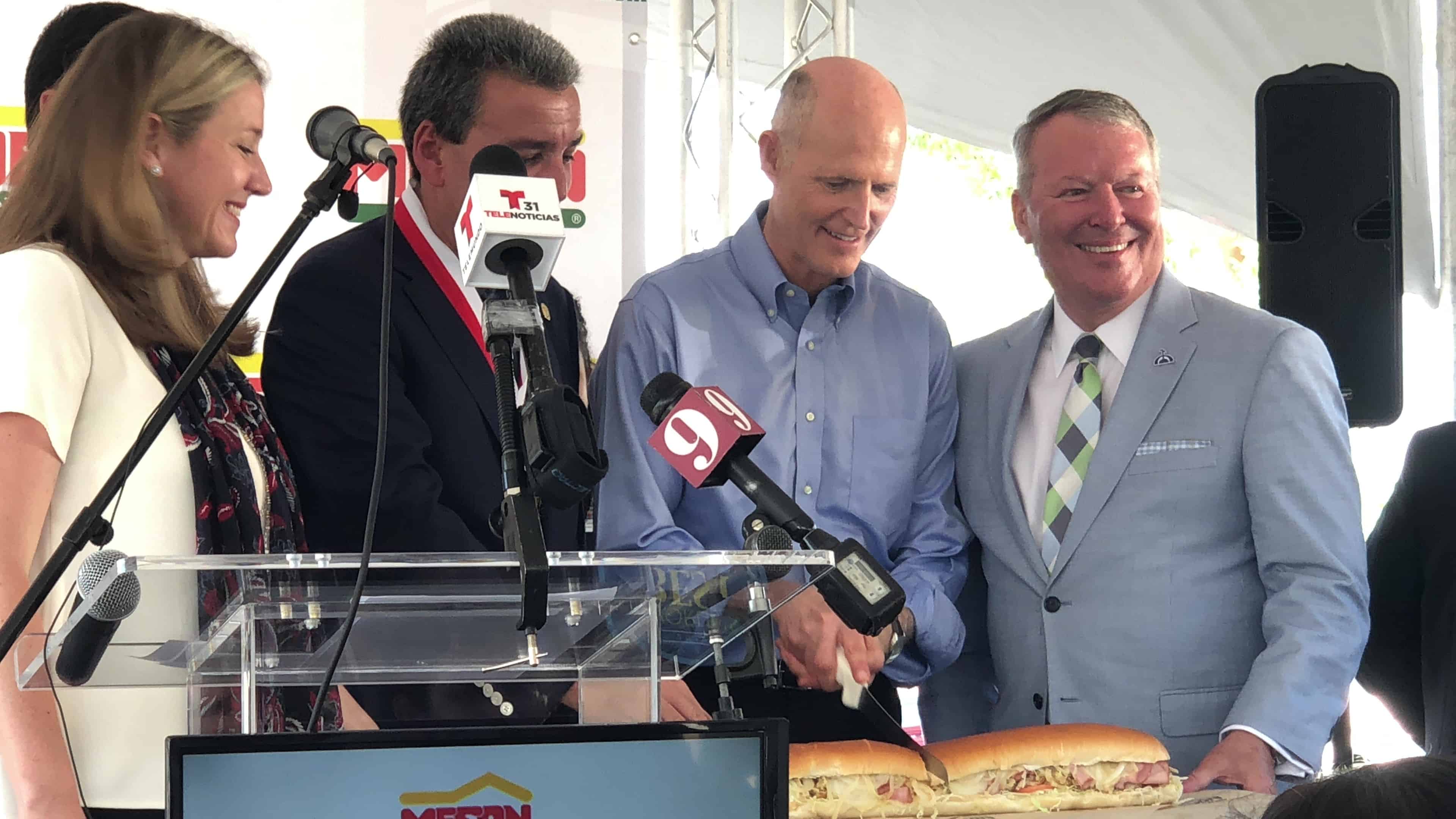 On May 18, instead of cutting a ribbon, Governor Rick Scott cut a sandwich to celebrate the grand opening of El Meson Sandwiches in the newer Lee Vista Promenade. The president of the restaurant, Felipe Perez, was also awarded a medal known as the Governor’s Business Ambassador Award. Mayor Buddy Dyer and Commissioner Tony Ortiz also declared May 18 as Orlando’s “Meson Sandwich Day.”