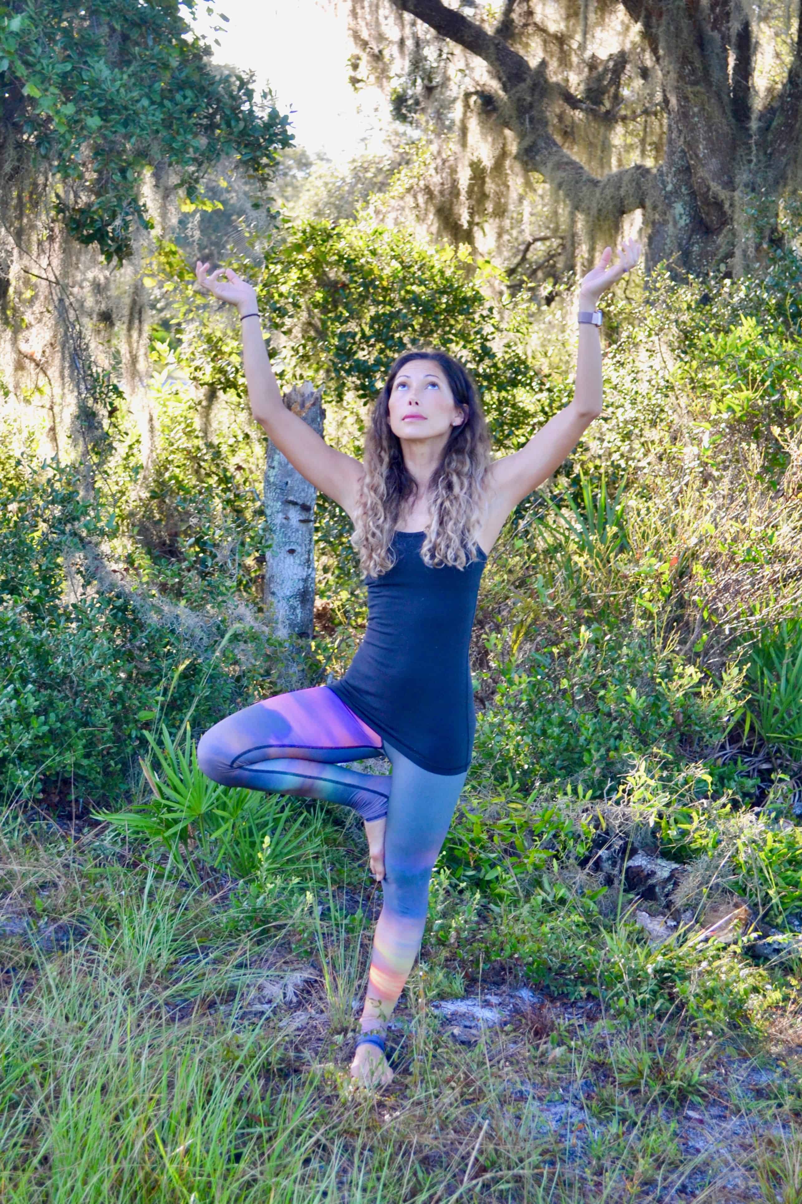 The pose strengthens thighs, calves, ankles and spine. It stretches the groins and inner thighs, chest, and shoulders. It relieves sciatica and reduces flat feet. The most important aspect of this pose is how it improves your sense of balance. You’ll never be absolutely still; your body will adjust slightly to maintain the pose. Small muscles in your feet will strengthen and activate as you balance through the pose. While maintaining the breath, allow yourself to focus on the act of balancing and adjusting just as a tree adjusts to the wind, rain and the elements of nature.