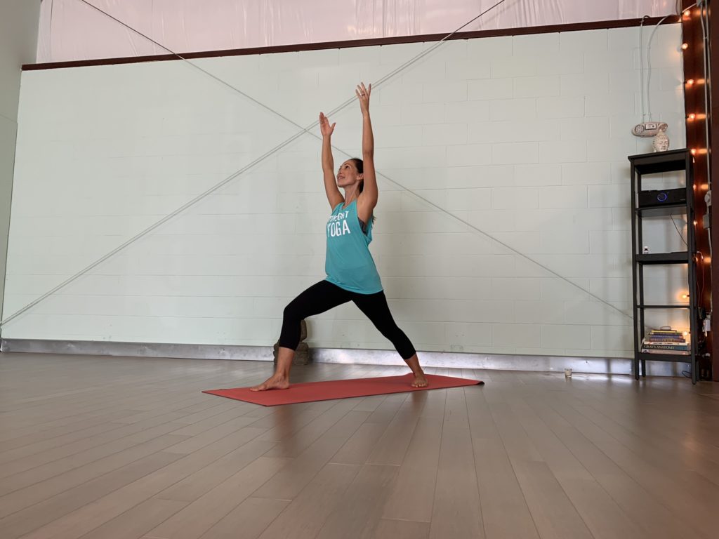 Warrior 1 is an essential yoga pose. It is part of Surya Namaskara B, or Sun Salutation B, which is a warmup linking breath and movement in Ashtanga, vinyasa, or power yoga. While there are three different “warrior” poses, warrior 1 brings a sense of power and strength to get your year off to a great start.