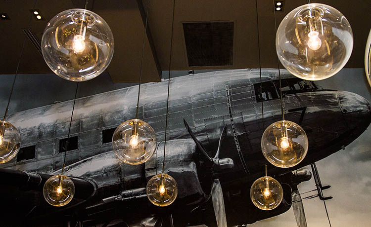 Hemisphere offers flexible seating to accommodate groups as well as small parties and single diners in its signature setting. Custom wine cuvees and lounge-style seating highlight the center of the restaurant, and large custom aviation-inspired murals adorn the walls. The Upper Deck presents a unique setting for private dining and receptions with an eagle-eye view.