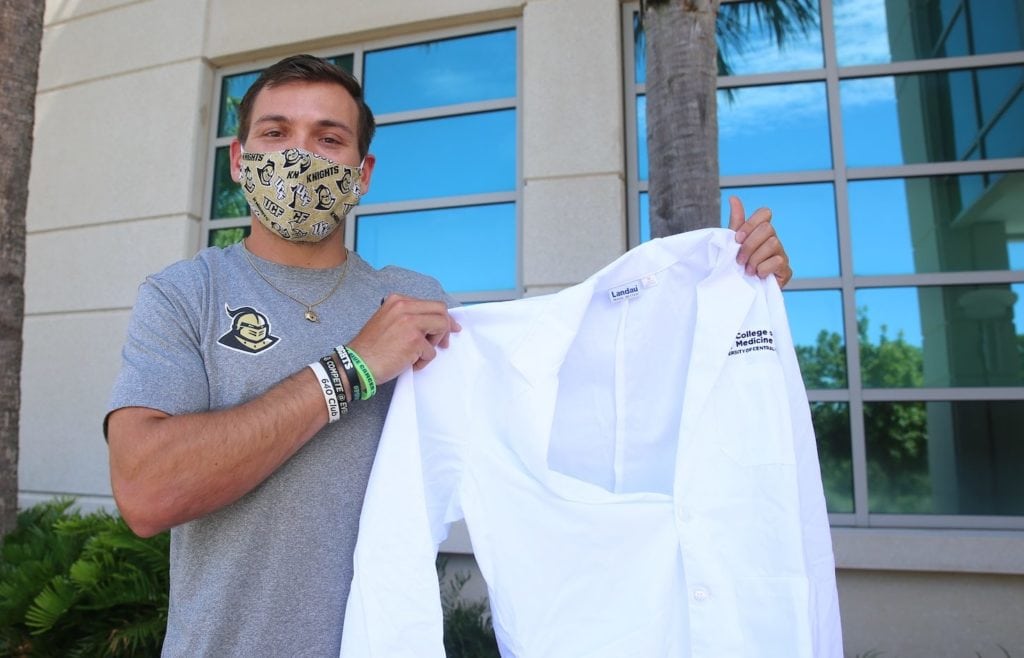 Kyle Benkel traded his UCF football jersey for a white coat – even though his new uniform, recognizing him as a physician-in-training, came in a plastic bag instead of a ceremony.