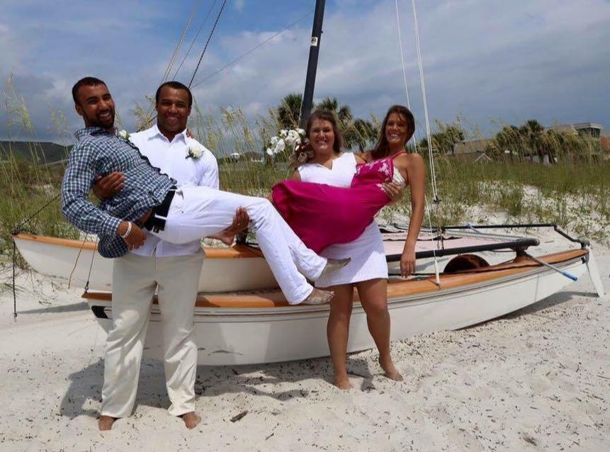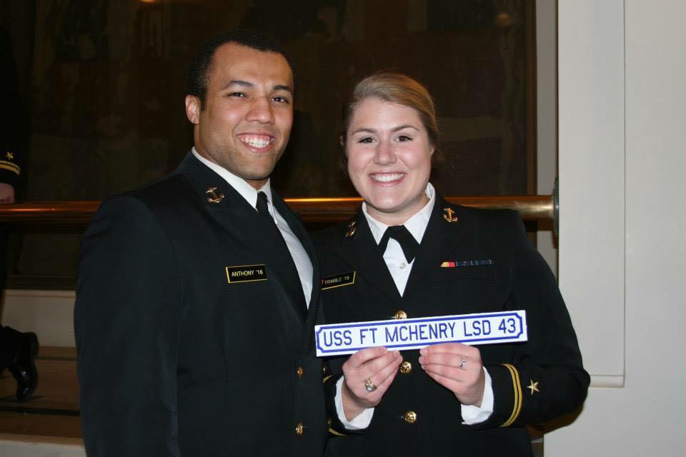 “It is has changed so many times since high school. I guess it all started when I got recruited to play volleyball at the Naval Academy. I didn’t originally want to go into the military, but once I visited Annapolis my junior year, I fell in love. I called as soon as I got home and verbally committed to play there. When I was at the Academy, I originally wanted to be a pilot but was medically disqualified, and that is how I ended up a SWO. I started dating my now-husband, Will, my junior year at the Academy (married June 2016). He played football (defensive end) for [the] Navy. Once I graduated, I chose orders to the USS Fort McHenry (LSD 43) homeported in Mayport, Florida. I picked the Fort Mac because it was as close to home as I could get and Will is from Jacksonville, so holidays are super easy going from his family to mine. My first tour was as the Electrical Officer onboard. I then chose to ‘fleet up’ – that is, do my follow on tour on the same ship. I am now serving as the Anti-Terrorism Officer and Legal Officer onboard the USS Fort McHenry. Time has flown since I graduated from the Academy in 2015. I recently promoted to LT and have new orders to go to shore duty in Singapore. I am very excited about that but nervous as well. Twelve time zones is a long way from home. We are looking forward to the amazing travel and new cultural experiences we will get to have there.”